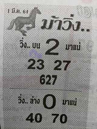 หวยซองม้าวิ่ง งวดวันที่ 1/3/64 คัดเลขเด็ดมาให้แฟนๆ ที่ยังไม่มีตัวเลขในใจครบทั้ง 2 ตัวและ 3 ตัว เลขมาแรงงวดนี้มีอะไรบ้าง ไปดูเลยค่ะ